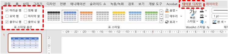 3. 표 스타일 옵션 설정하기(머리글 행, 줄무늬 행)